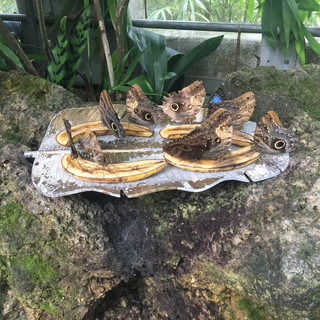 At any rate, we enjoyed a delightful day of sightseeing in Gainesville, starting with the Butterfly Rainforest at the Florida Museum of Natural History. It was fascinating watching all the beautiful butterflies flit through the habitat. One butterfly obviously had an affinity for Bruce, as she attached to his shirt, and hung around for several minutes.